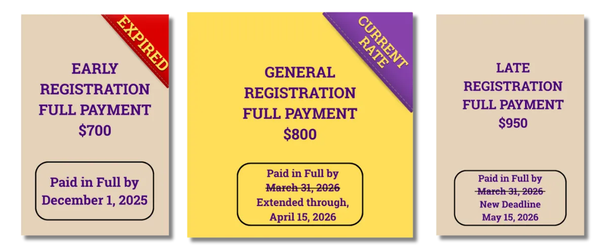 Up to 50% of payment may be applied to the following year’s G2G registration if transfer of registration request is received no later than August 15, 2026. (transfer is valid for 1 year only - through August 15, 2027.).